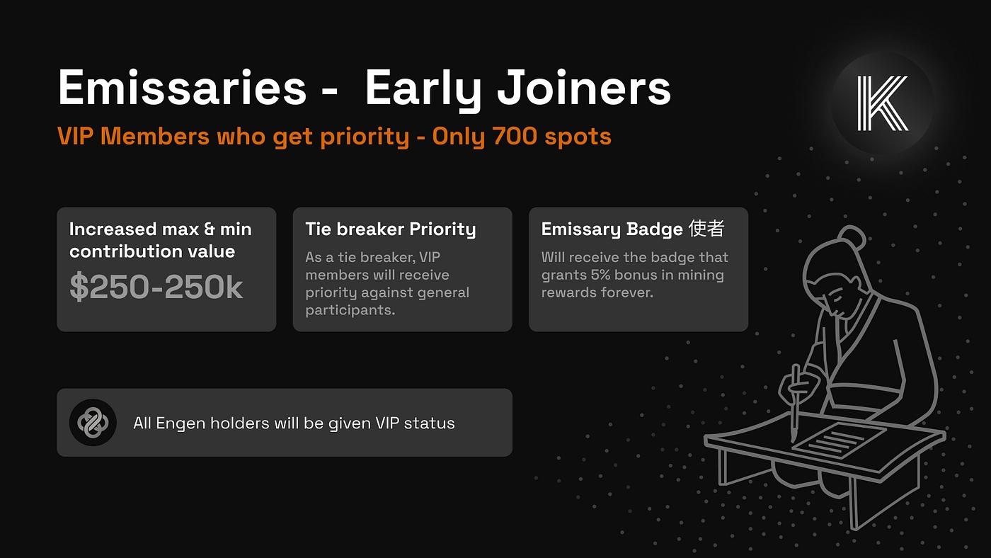 Minimum Contribution: $500 ($250 for Emissaries & Engen Holders) Max Contribution: $100,000 ($250k for Emissaries & Engen Holders)