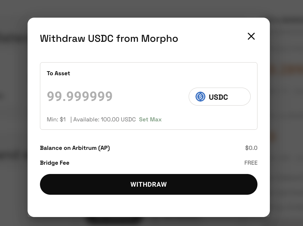 Input the amount of USDC you with to withdraw in the relevant box and click 'withdraw'.