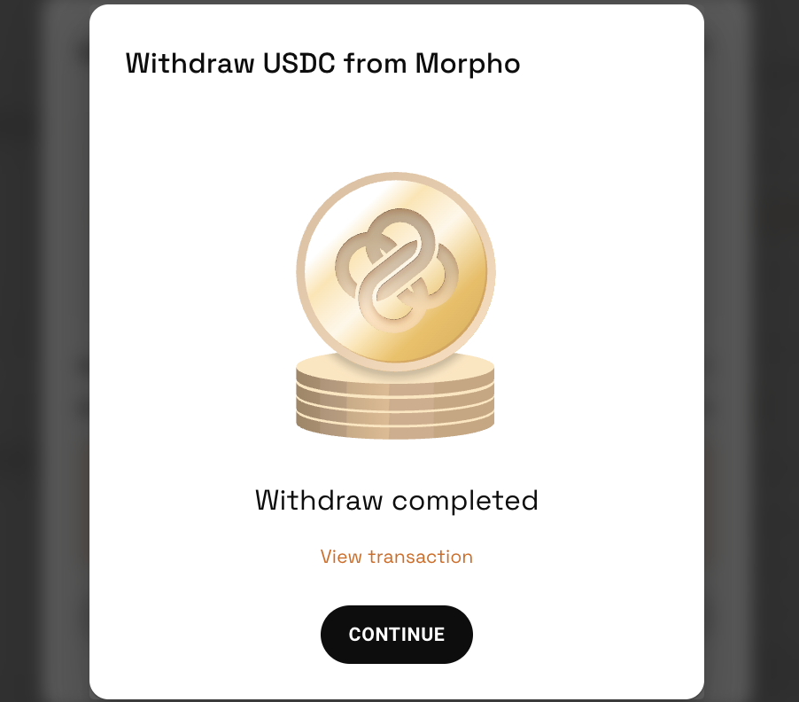 Once complete, you will then see a confirmation screen. The USDC will have been returned to your Kinto wallet.